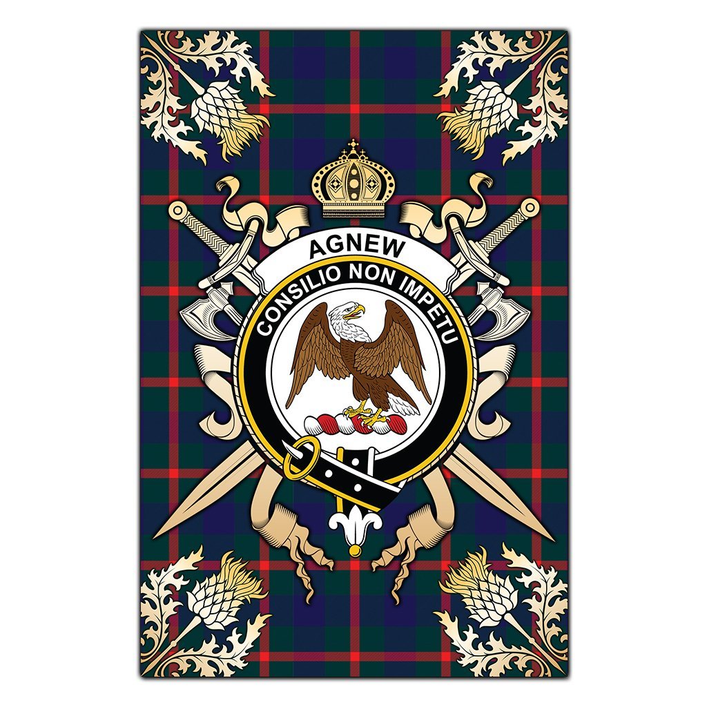 Agnew Modern Tartan Crest Black Garden Flag - Gold Thistle Style