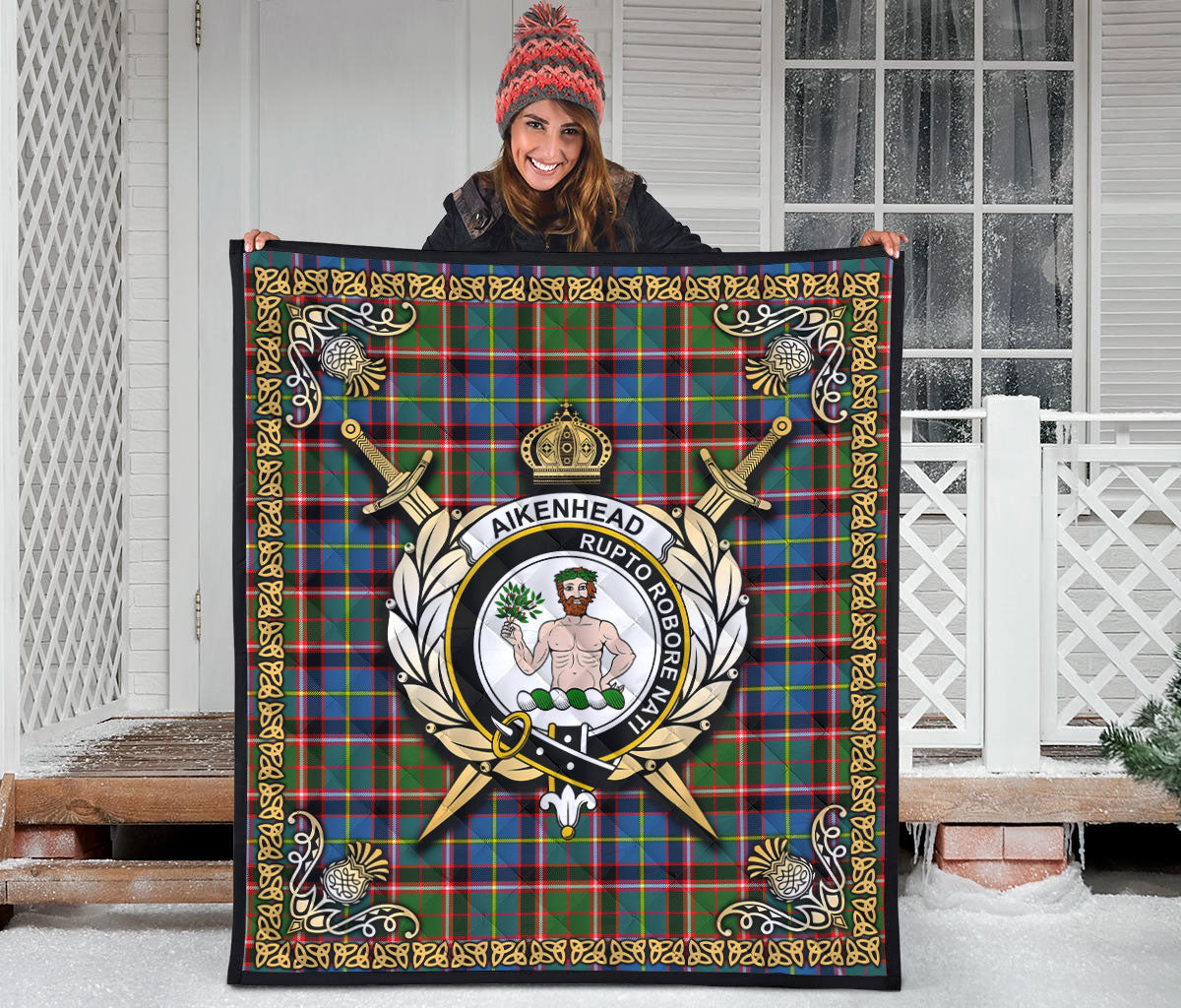 Aikenhead Tartan Crest Premium Quilt - Celtic Thistle Style