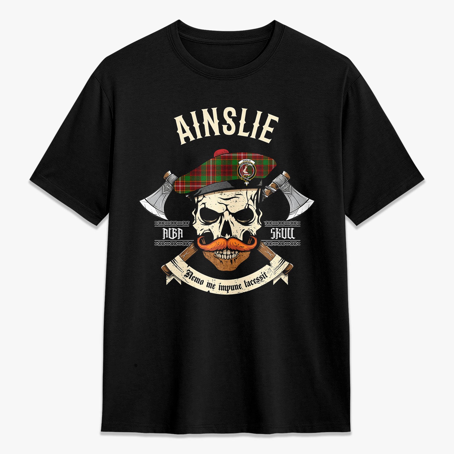 Ainslie Tartan Crest 2D T-shirt - Alba Skull Style,