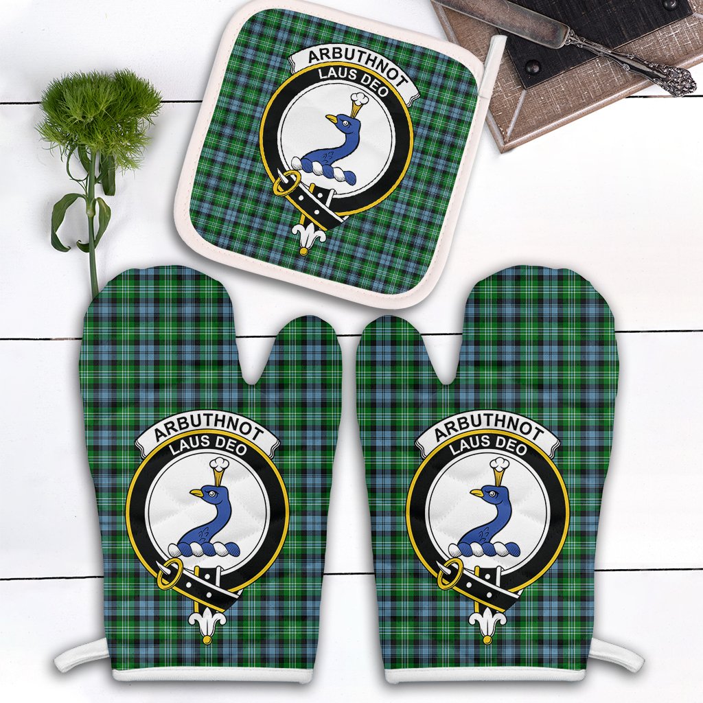 Arbuthnot Ancient Tartan Crest Oven Mitt And Pot Holder (2 Oven Mitts + 1 Pot Holder)