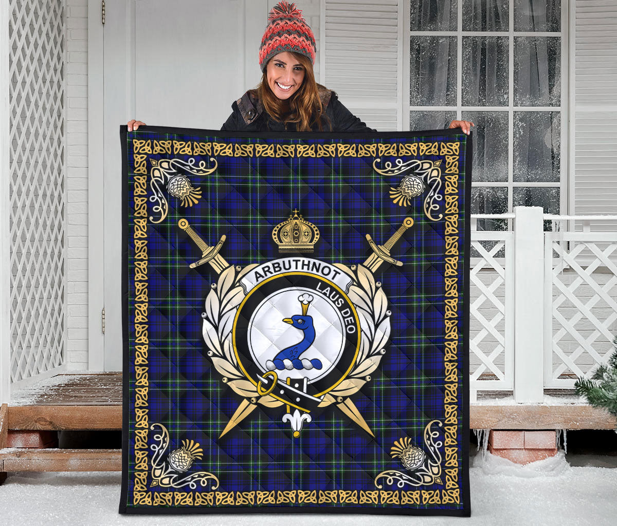 Arbuthnot Modern Tartan Crest Premium Quilt - Celtic Thistle Style