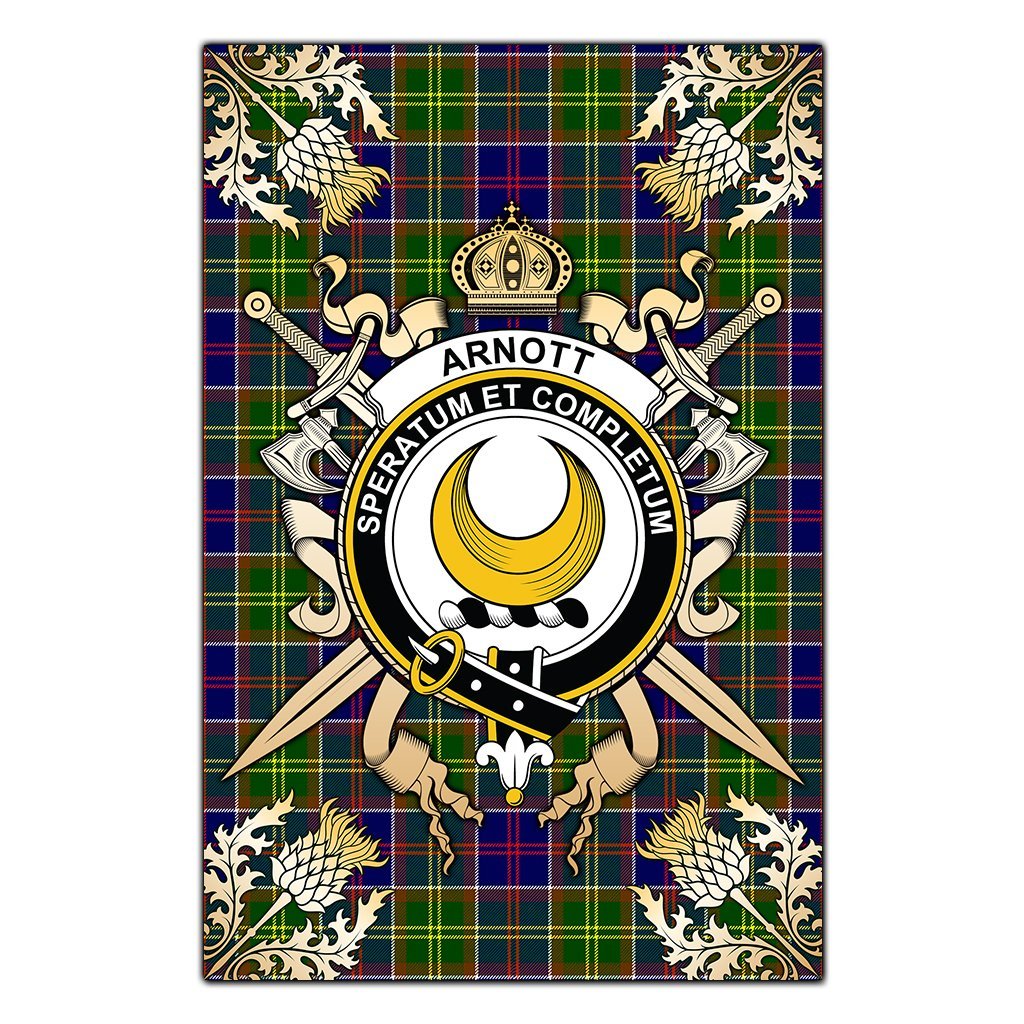 Arnott Tartan Crest Black Garden Flag - Gold Thistle Style