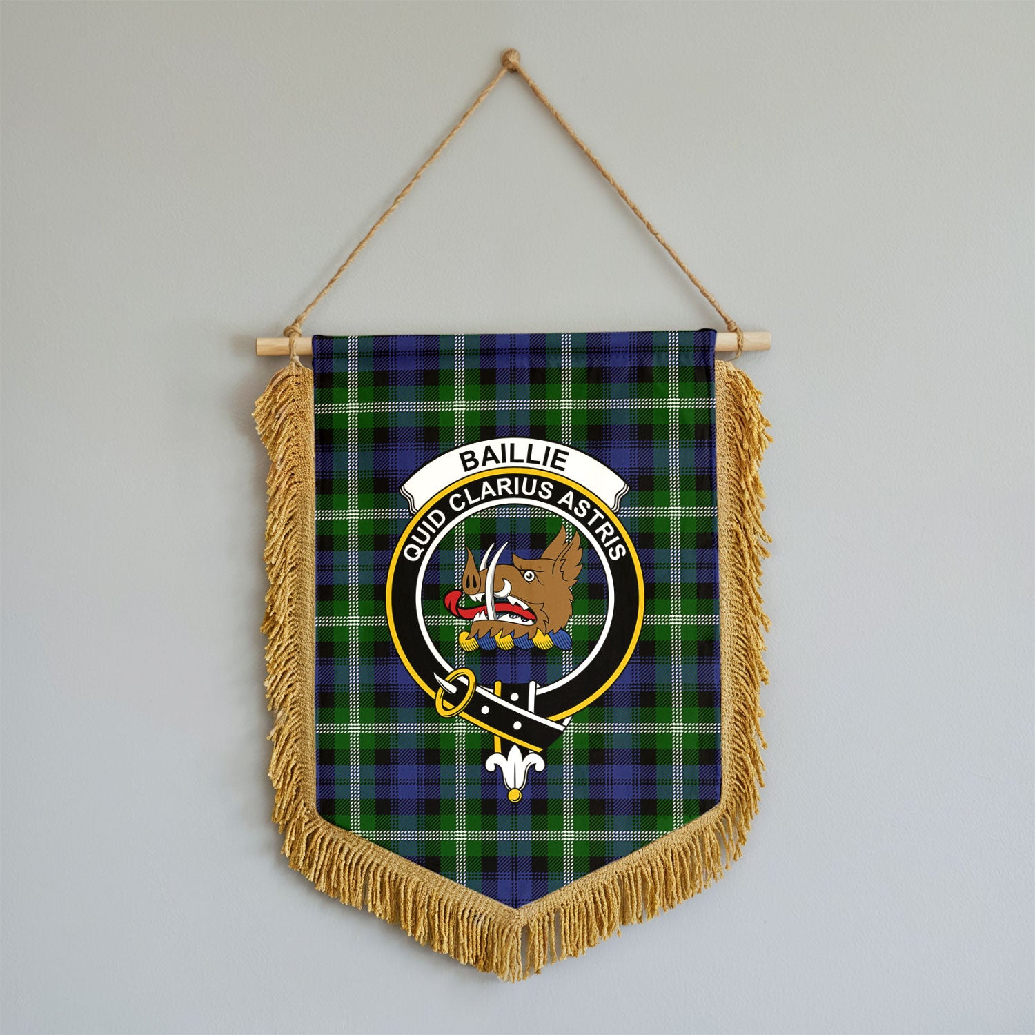 Baird Modern Tartan Crest Wall Hanging Banner - Wood Pole