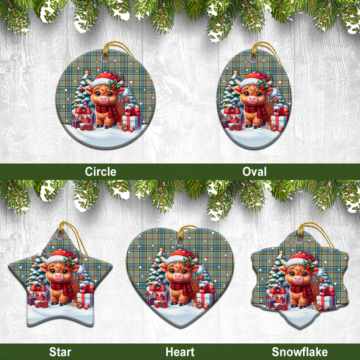 Balfour Blue Tartan Christmas Ceramic Ornament - Highland Cow Winter Style