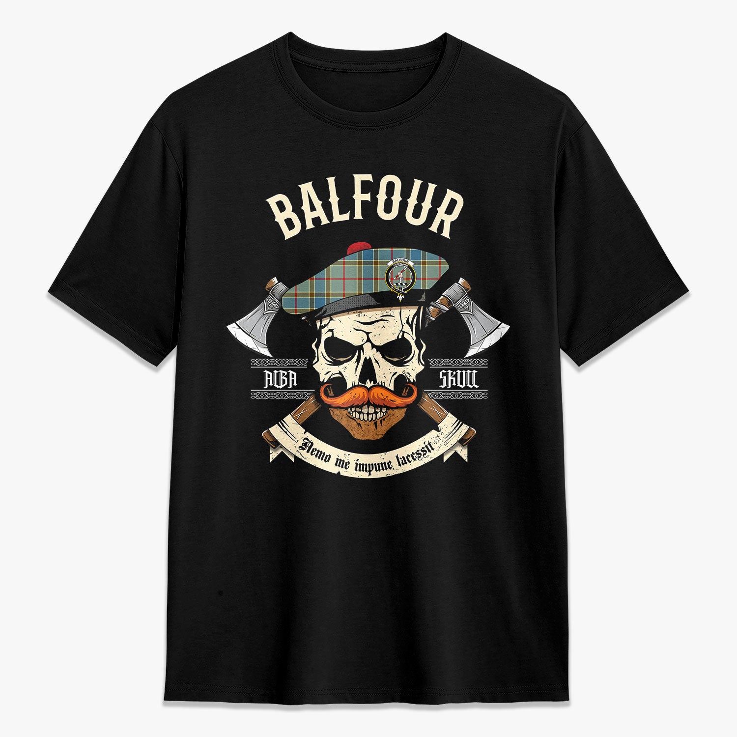 Balfour Blue Tartan Crest 2D T-shirt - Alba Skull Style,