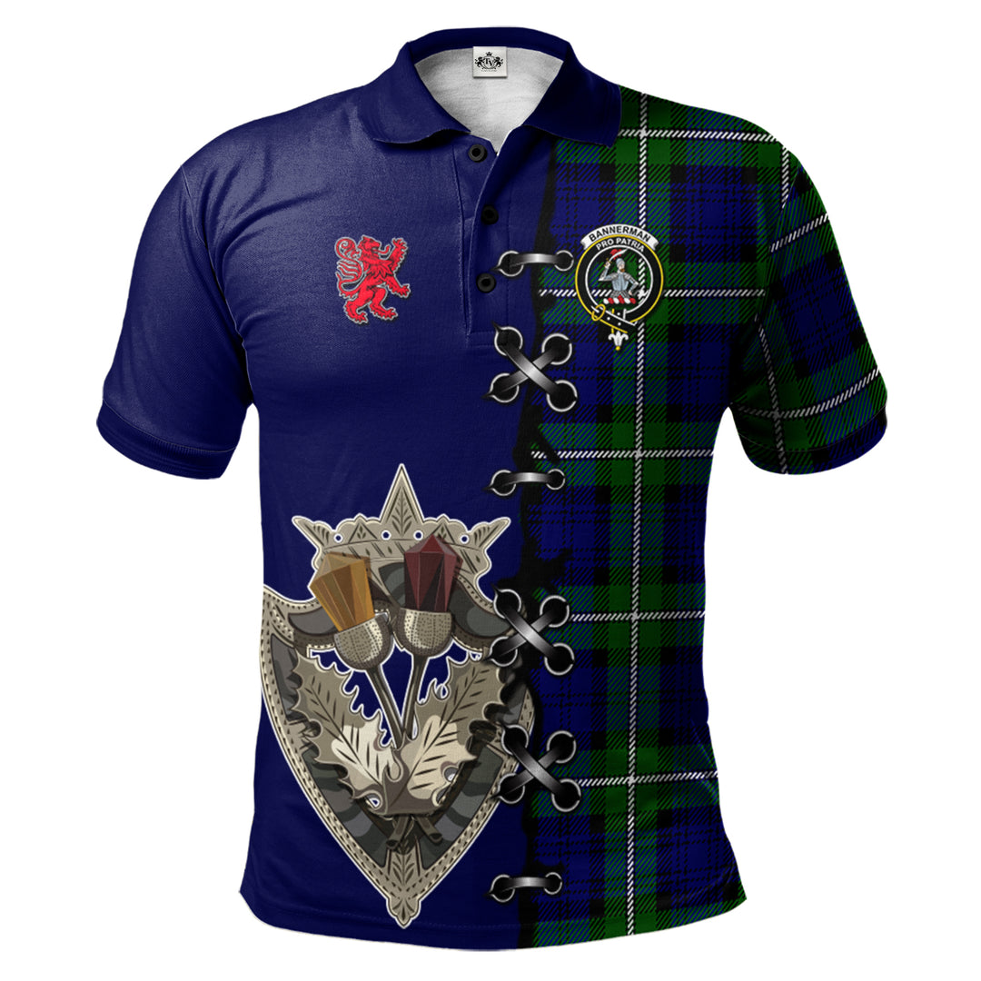 Bannerman Tartan Polo Shirt - Lion Rampant And Celtic Thistle Style