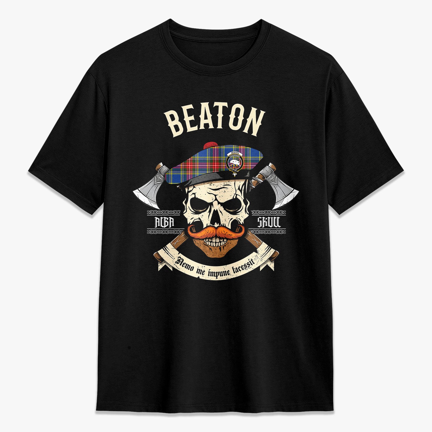 Beaton Modern Tartan Crest 2D T-shirt - Alba Skull Style,