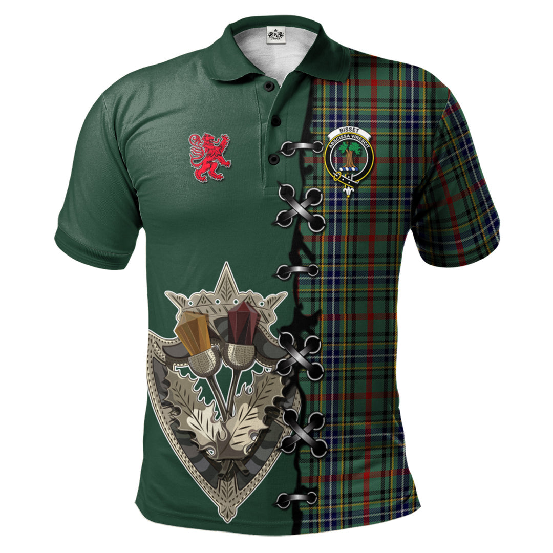 Bisset Tartan Polo Shirt - Lion Rampant And Celtic Thistle Style