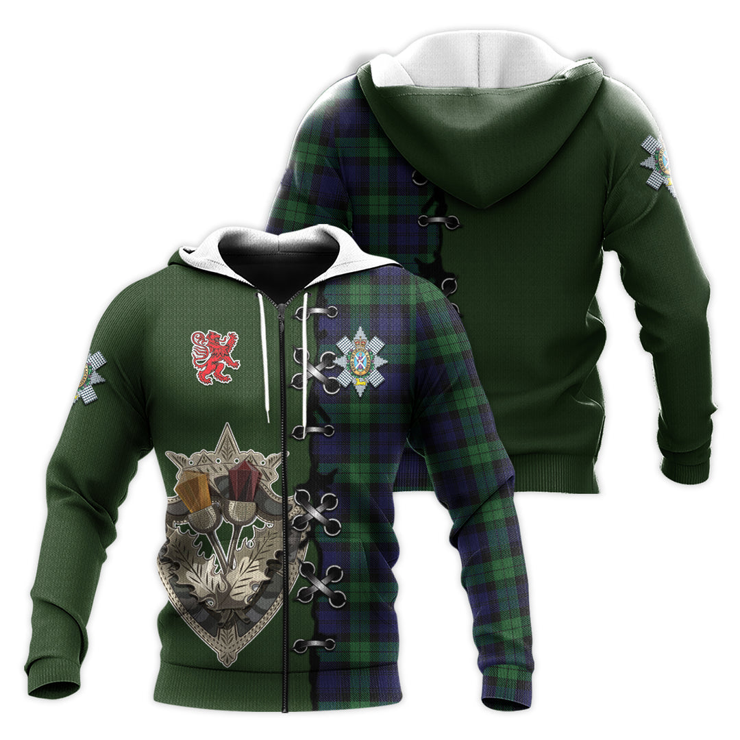 Black Watch Tartan Hoodie - Lion Rampant And Celtic Thistle Style