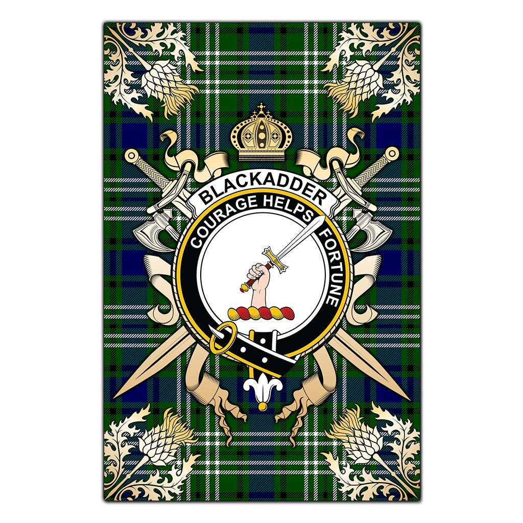 Blackadder Tartan Crest Black Garden Flag - Gold Thistle Style