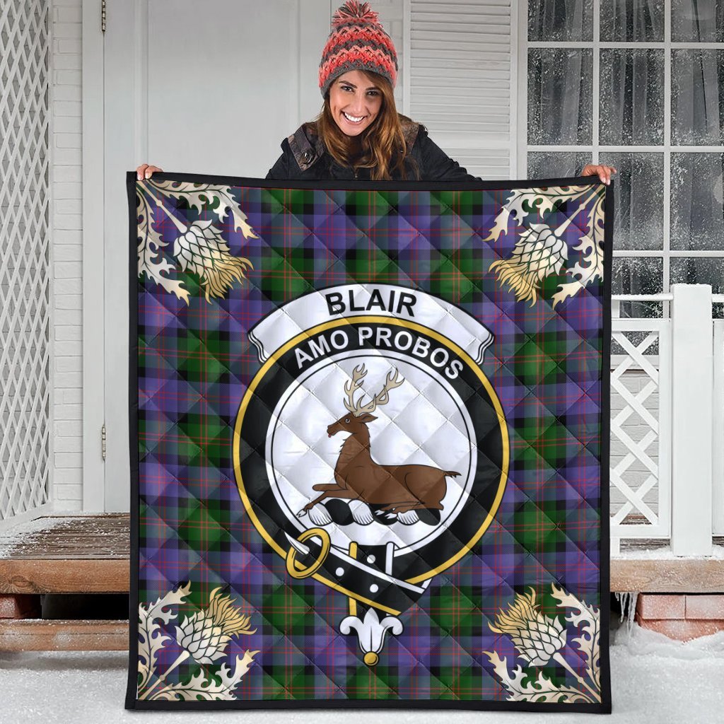 Blair Modern Tartan Crest Premium Quilt - Gold Thistle Style