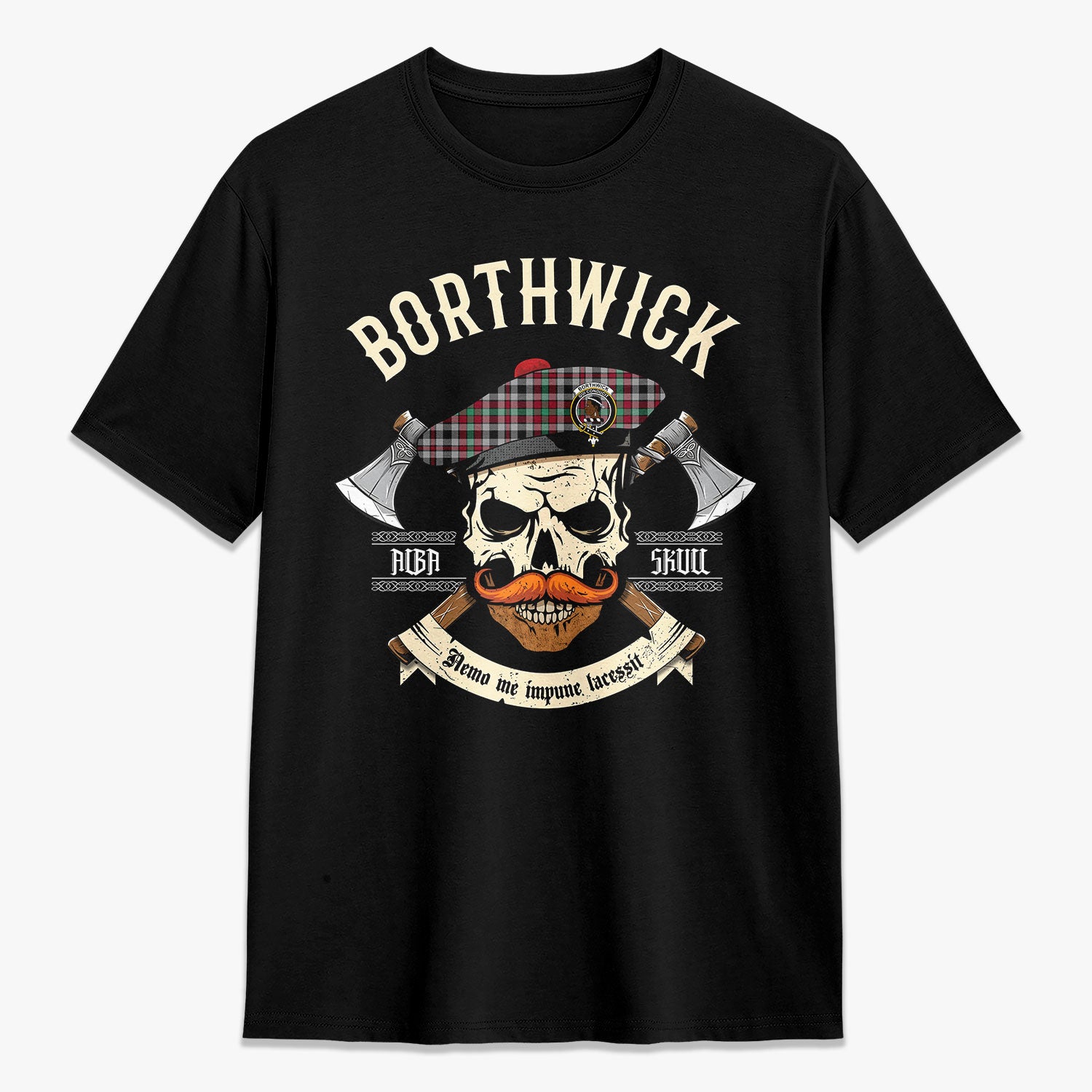 Borthwick Ancient Tartan Crest 2D T-shirt - Alba Skull Style,
