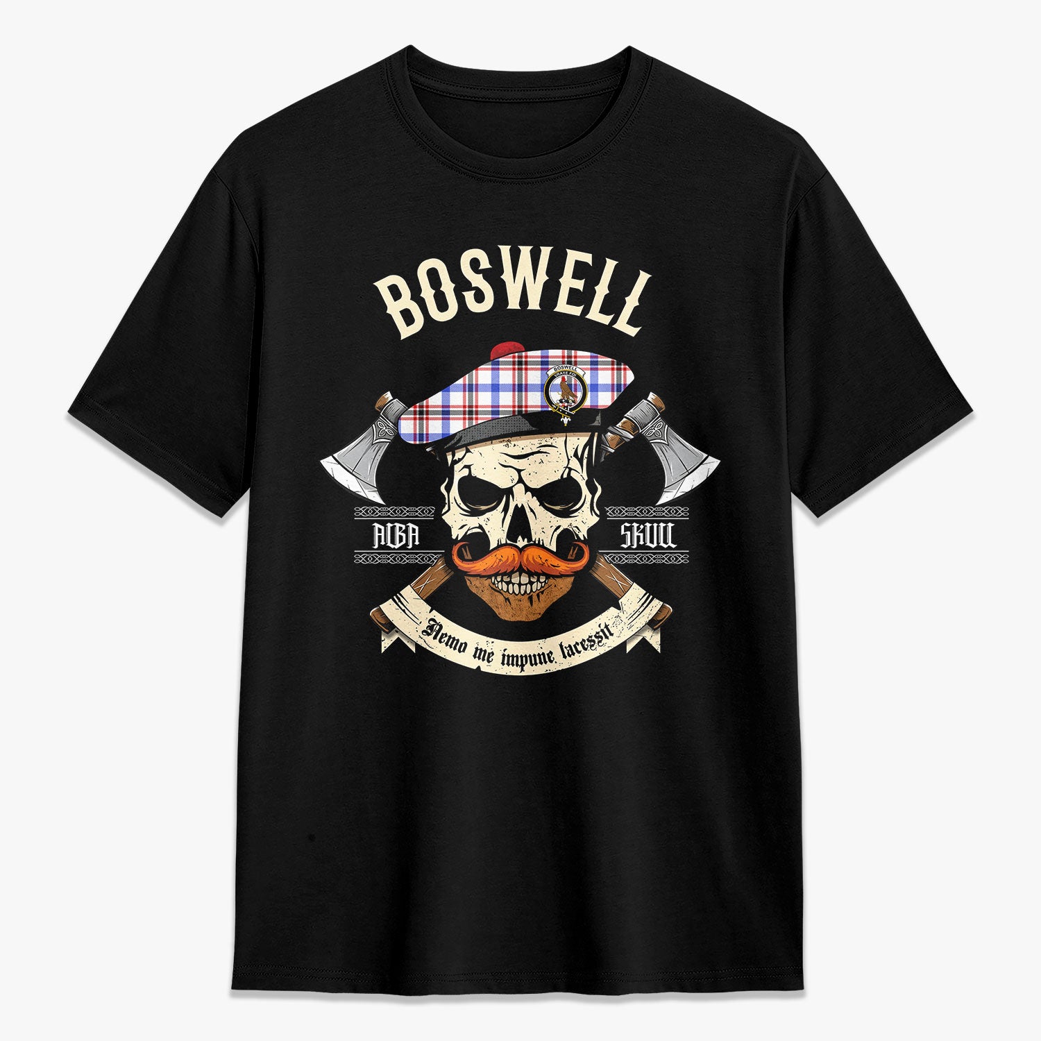 Boswell Modern Tartan Crest 2D T-shirt - Alba Skull Style,