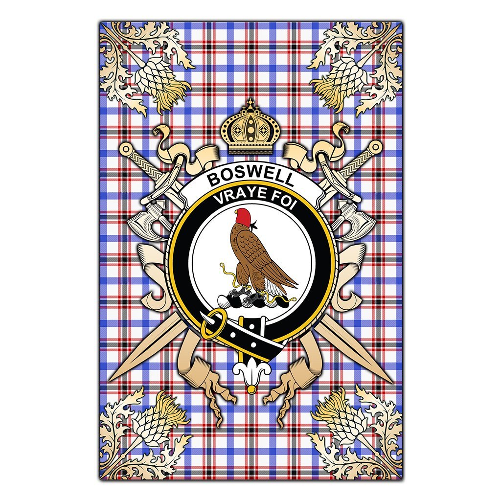 Boswell Modern Tartan Crest Black Garden Flag - Gold Thistle Style