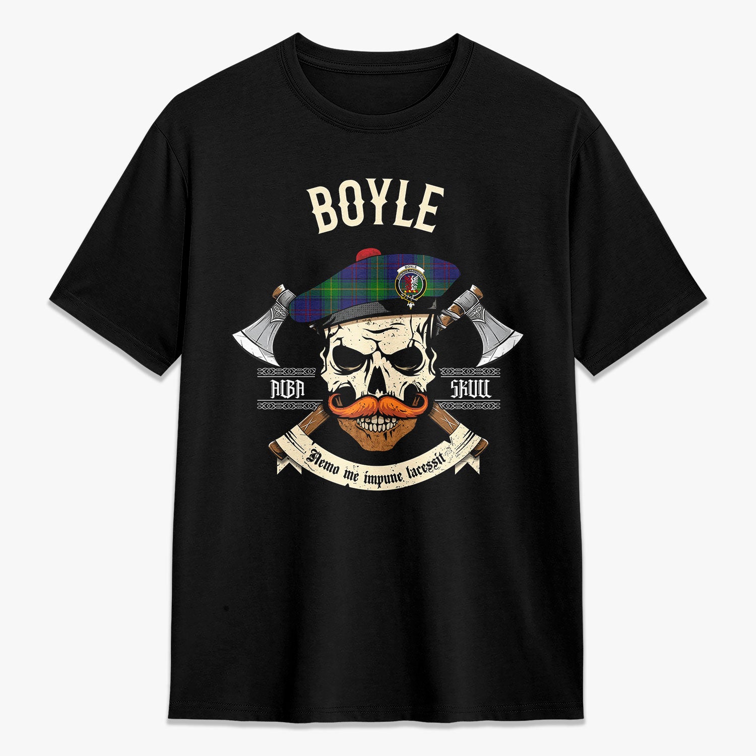 Boyle Tartan Crest 2D T-shirt - Alba Skull Style,