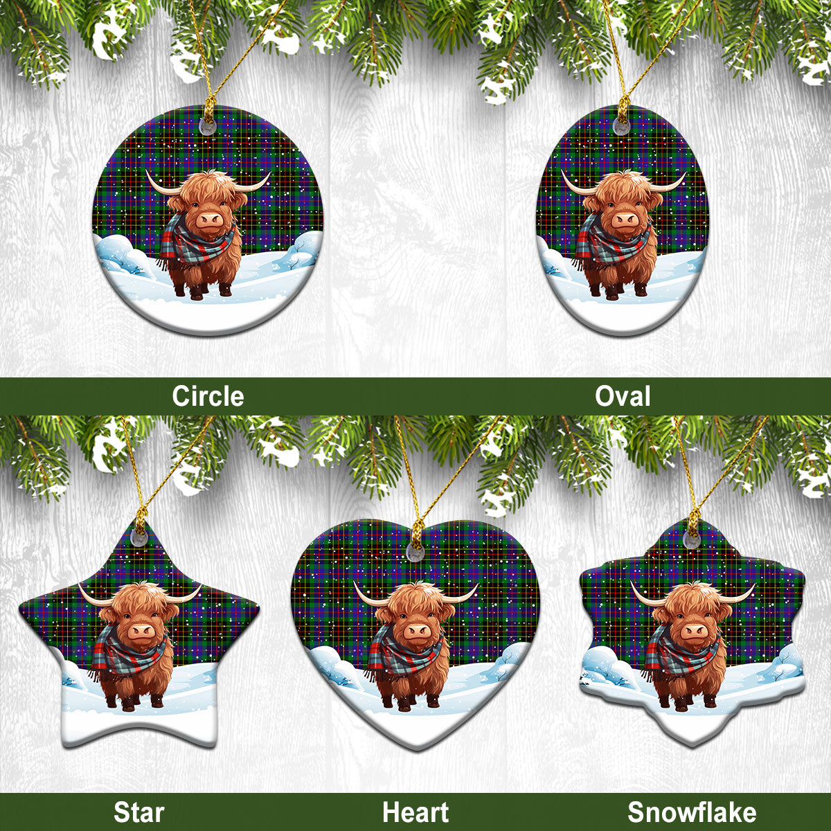 Brodie Hunting Modern Tartan Christmas Ceramic Ornament - Highland Cows Snow Style