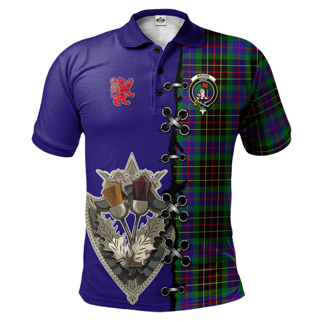 Brodie Hunting Modern Tartan Polo Shirt - Lion Rampant And Celtic Thistle Style