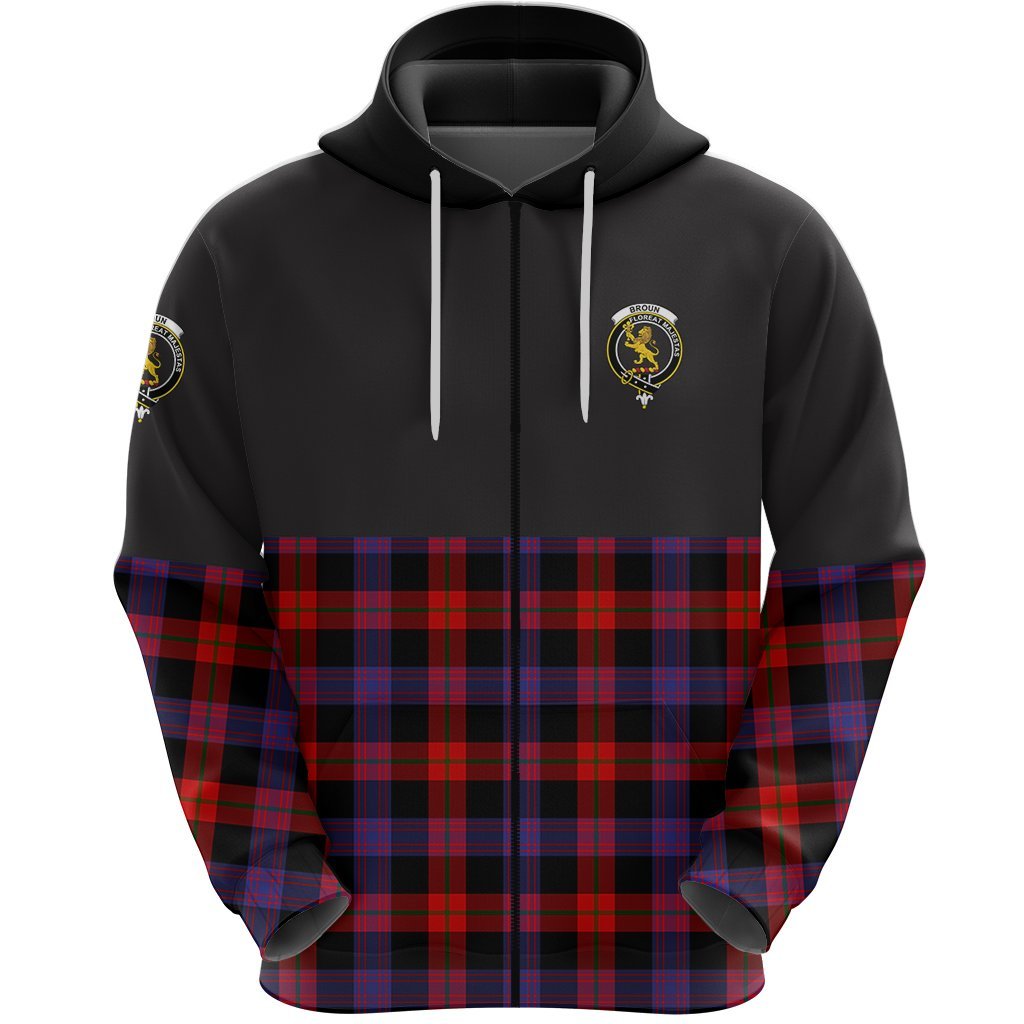 Broun Modern Clan Half Of Tartan Zipper Hoodie