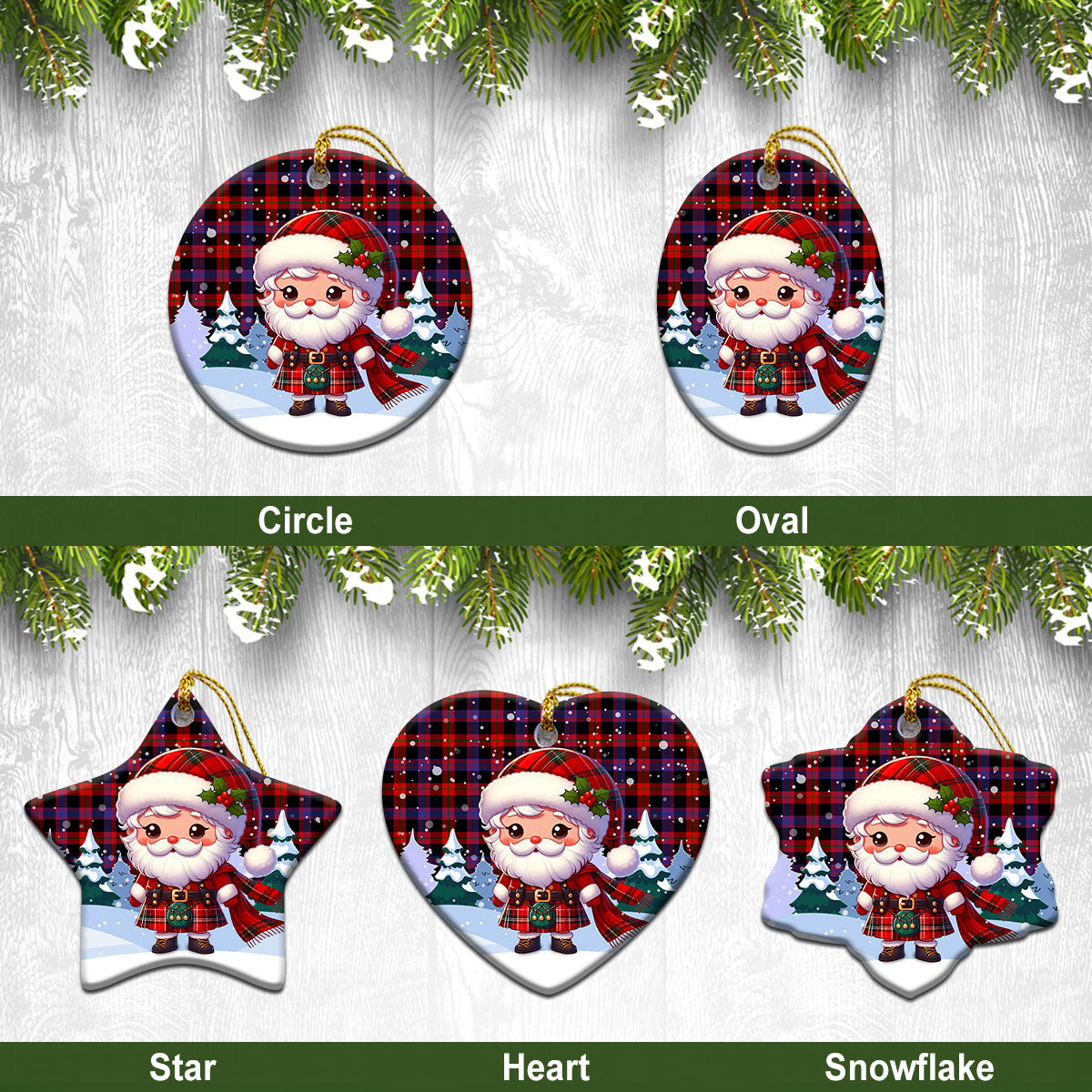 Brown Modern Tartan Christmas Ceramic Ornament - Santa Claus In Kilt Style