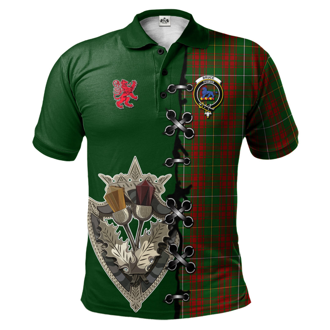 Bruce Hunting Tartan Polo Shirt - Lion Rampant And Celtic Thistle Style