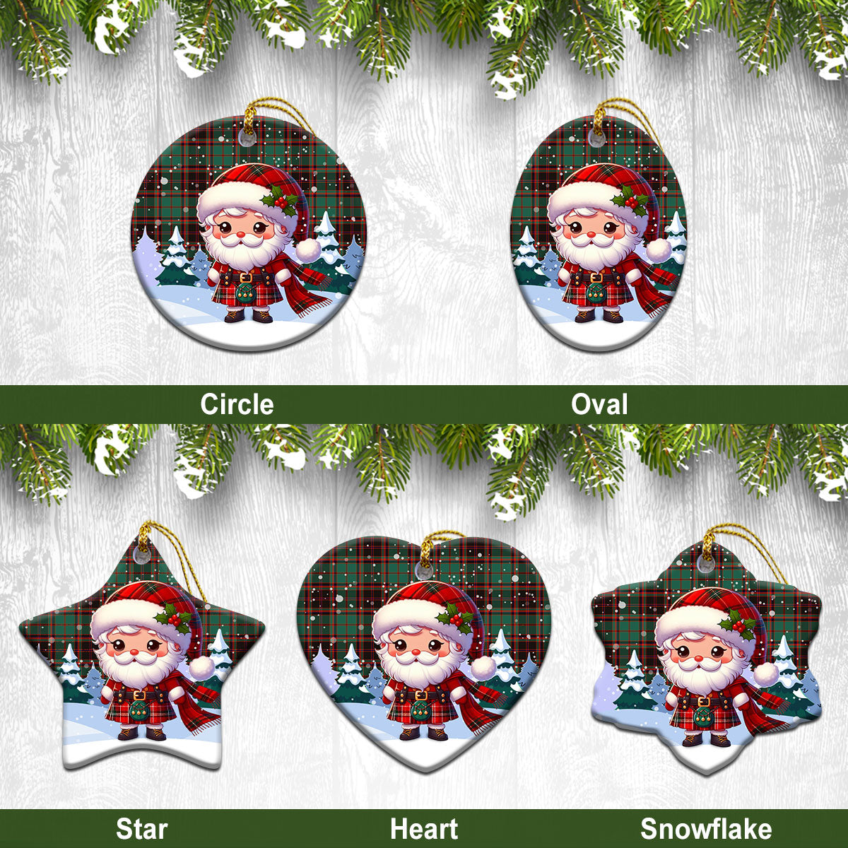 Buchan Ancient Tartan Christmas Ceramic Ornament - Santa Claus In Kilt Style