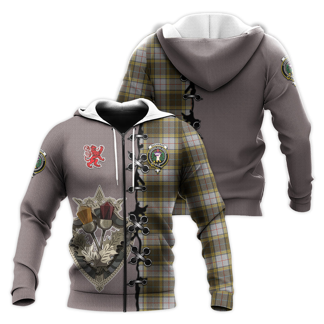 Buchanan Dress Tartan Hoodie - Lion Rampant And Celtic Thistle Style