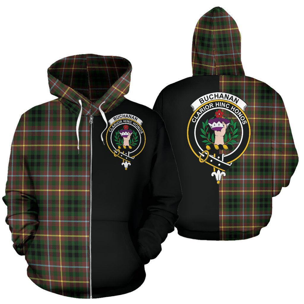 Buchanan Hunting Tartan Crest Zipper Hoodie - Half Of Me Style