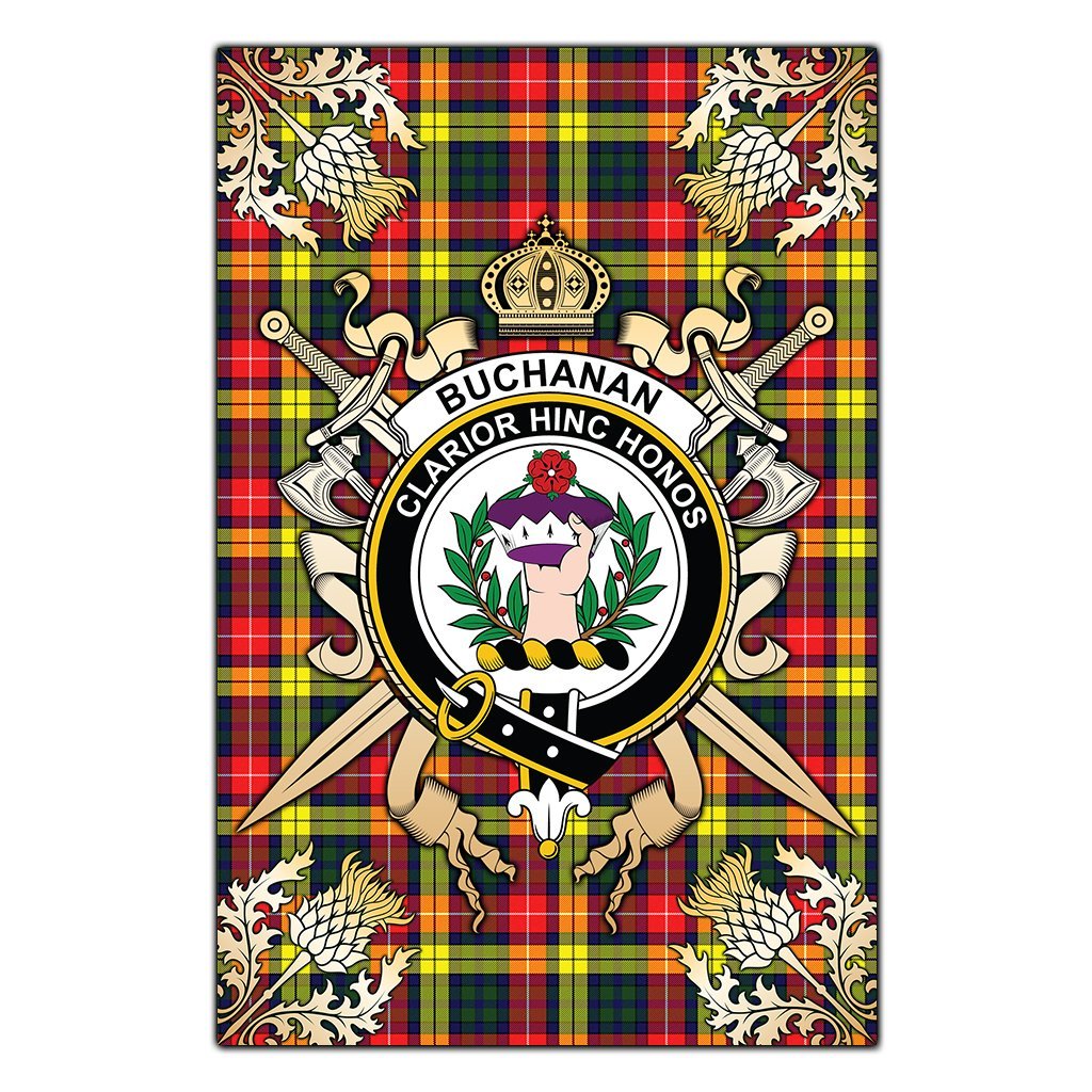 Buchanan Modern Tartan Crest Black Garden Flag - Gold Thistle Style