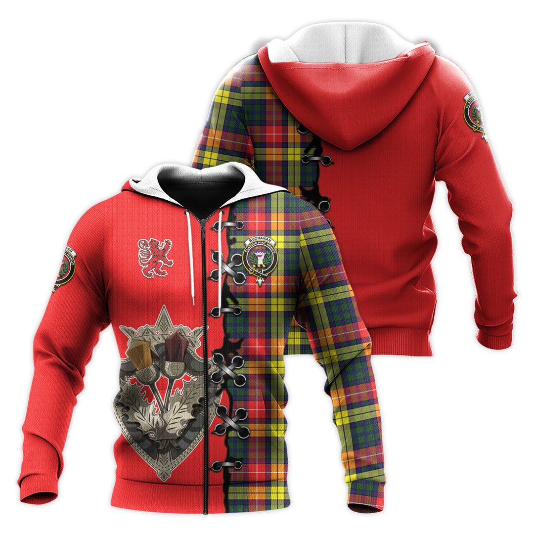 Buchanan Modern Tartan Hoodie - Lion Rampant And Celtic Thistle Style