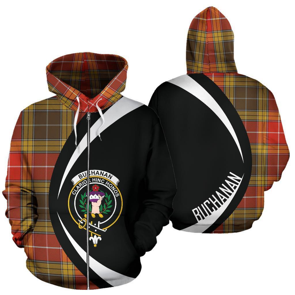 Buchanan Old Set Weathered Tartan Crest Zipper Hoodie - Circle Style
