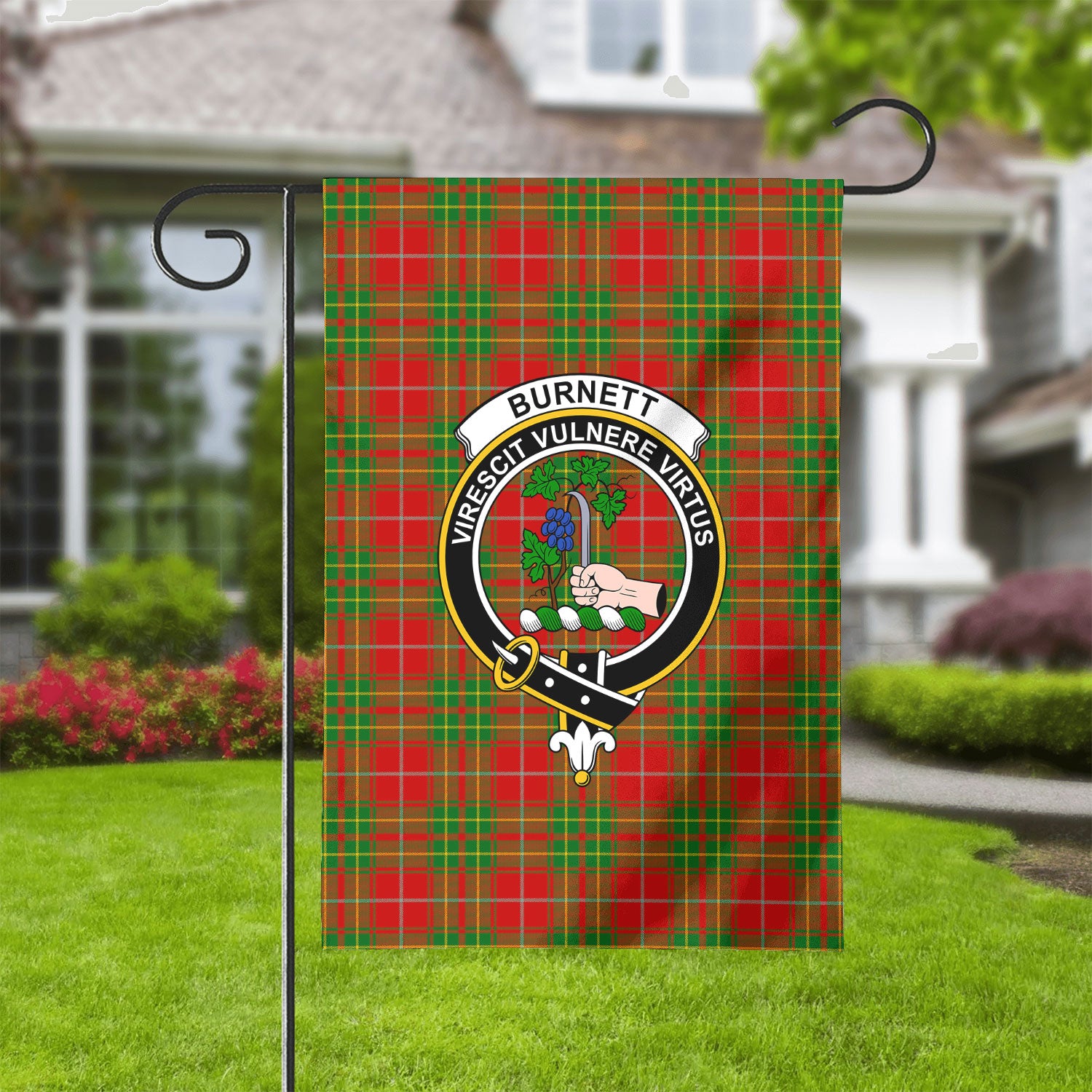 Burnett Ancient Tartan Crest Garden Flag