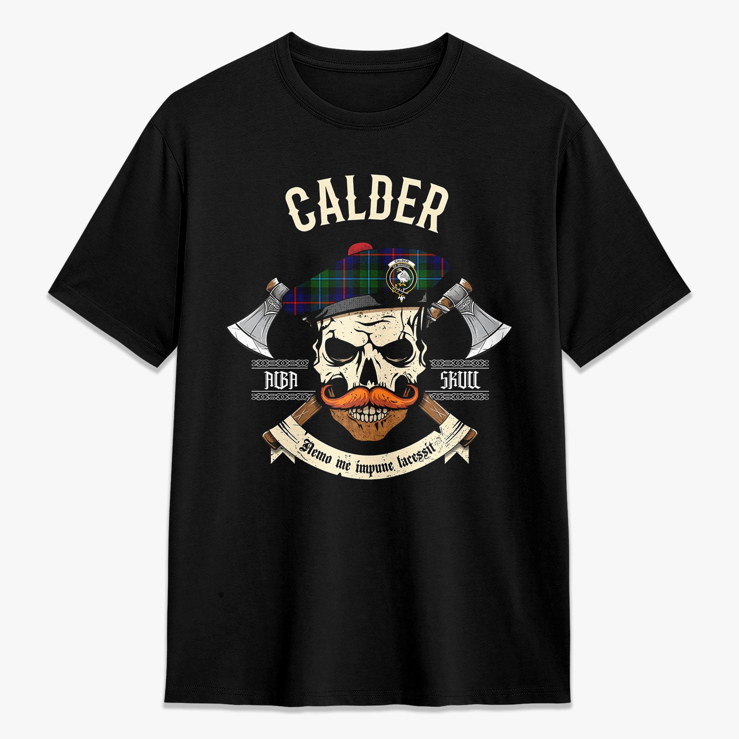 Calder (Calder-Campbell) Tartan Crest 2D T-shirt - Alba Skull Style,