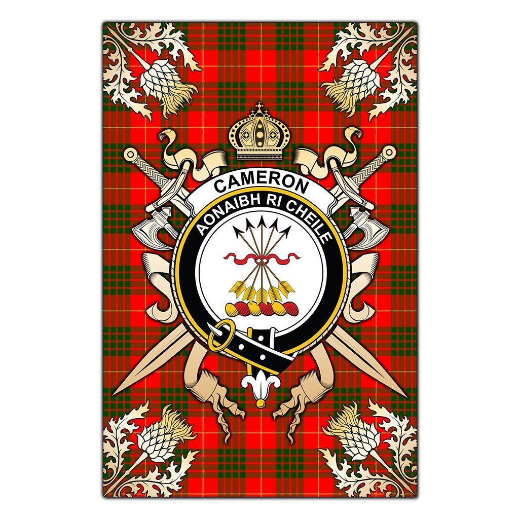 Cameron Modern Tartan Crest Black Garden Flag - Gold Thistle Style