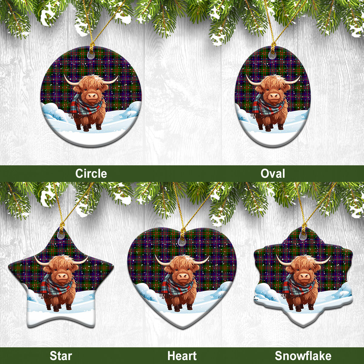 Cameron of Erracht Modern Tartan Christmas Ceramic Ornament - Highland Cows Snow Style