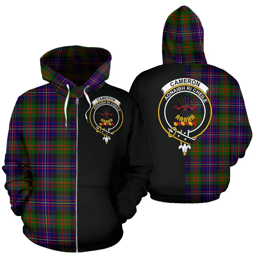 Cameron of Erracht Modern Tartan Crest Zipper Hoodie - Half Of Me Style