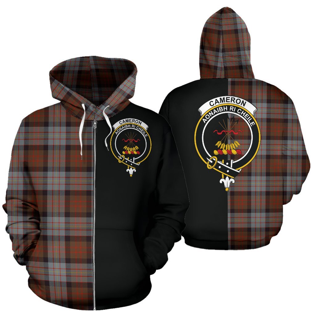 Cameron of Erracht Weathered Tartan Crest Zipper Hoodie - Half Of Me Style