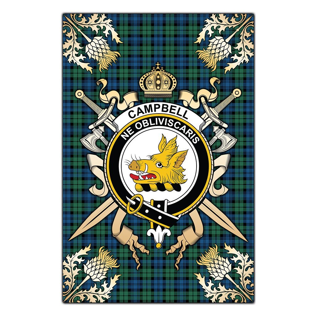 Campbell Ancient 02 Tartan Crest Black Garden Flag - Gold Thistle Style