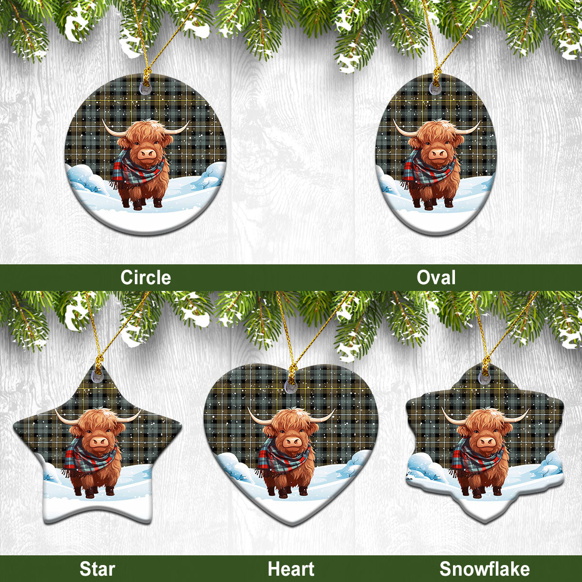 Campbell Argyll Weathered Tartan Christmas Ceramic Ornament - Highland Cows Snow Style