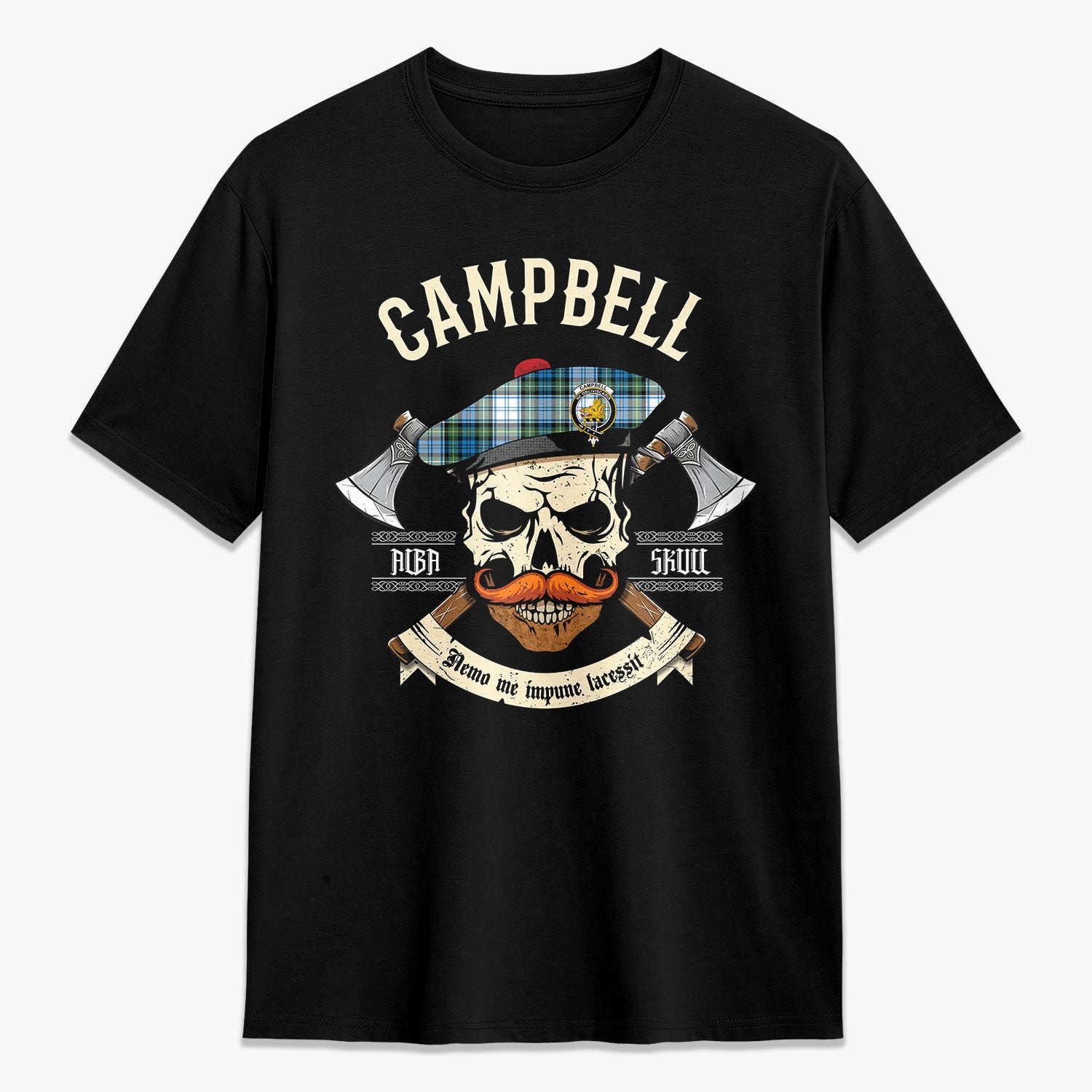 Campbell Dress Ancient Tartan Crest 2D T-shirt - Alba Skull Style,