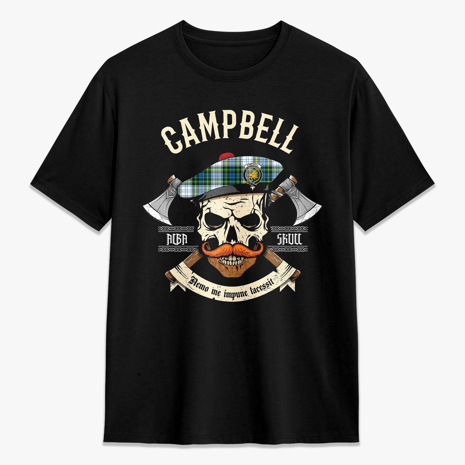 Campbell Dress Tartan Crest 2D T-shirt - Alba Skull Style,