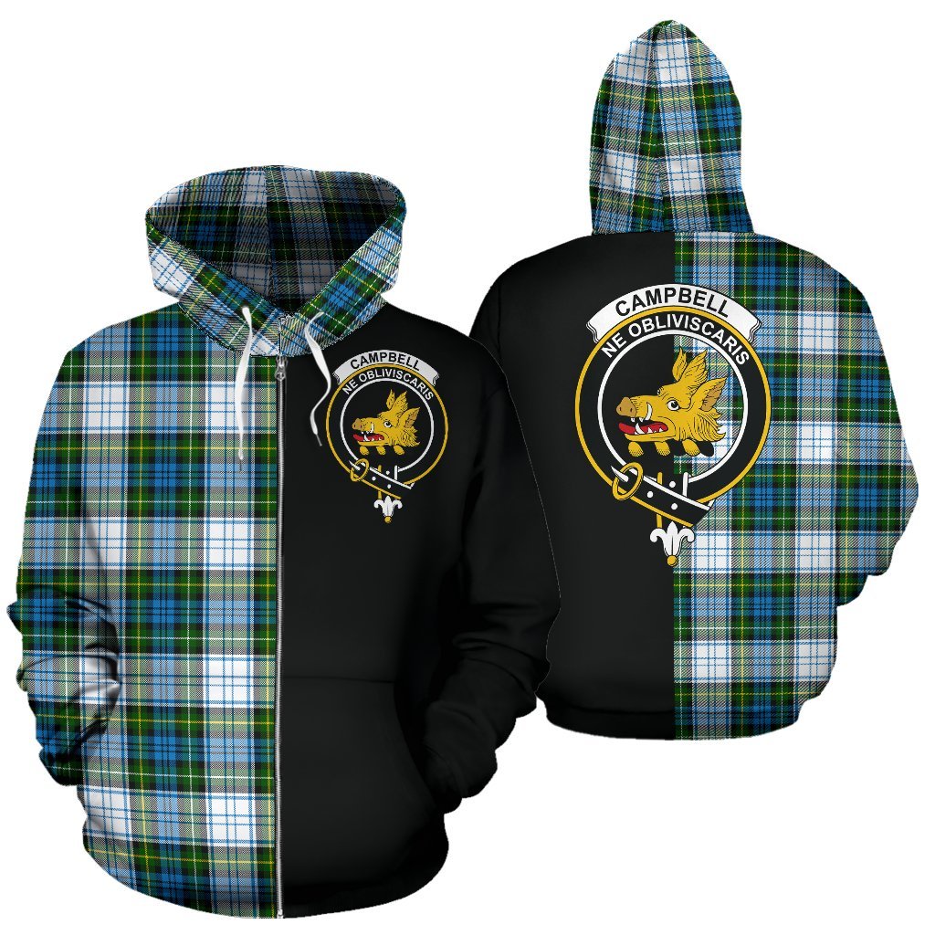 Campbell Dress Tartan Crest Zipper Hoodie - Half Of Me Style