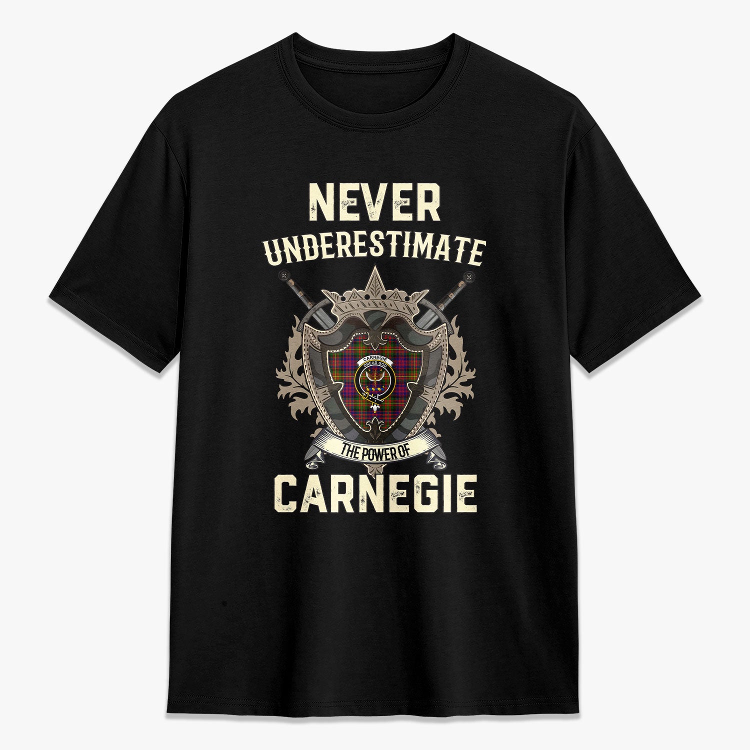 Carnegie Modern Tartan Crest 2D T-shirt - Never Underestimate Style