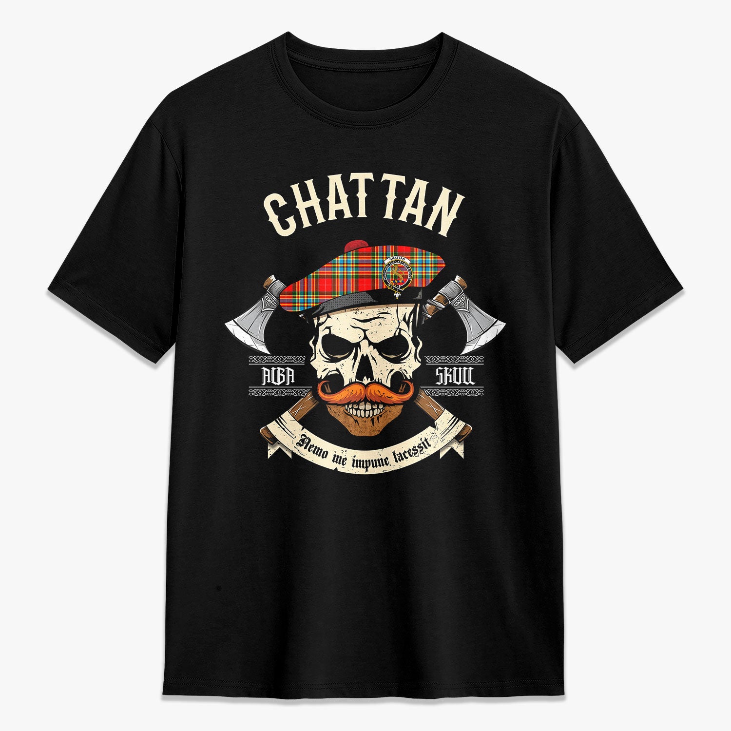 Chattan Tartan Crest 2D T-shirt - Alba Skull Style,