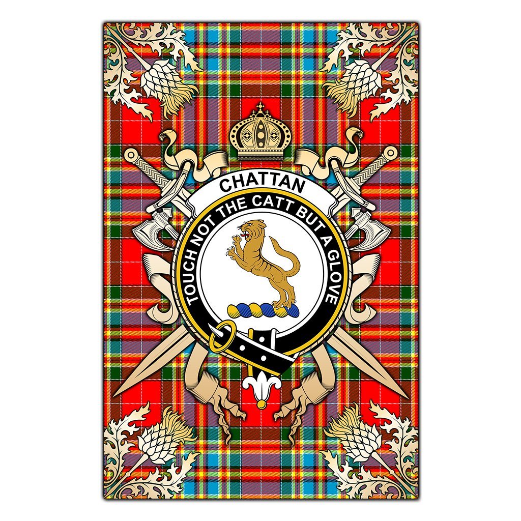 Chattan Tartan Crest Black Garden Flag - Gold Thistle Style