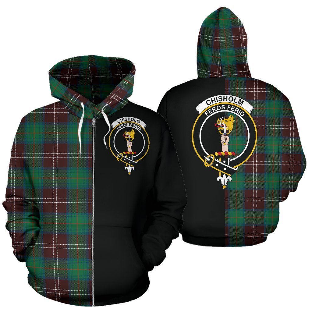 Chisholm Hunting Ancient Tartan Crest Zipper Hoodie - Half Of Me Style