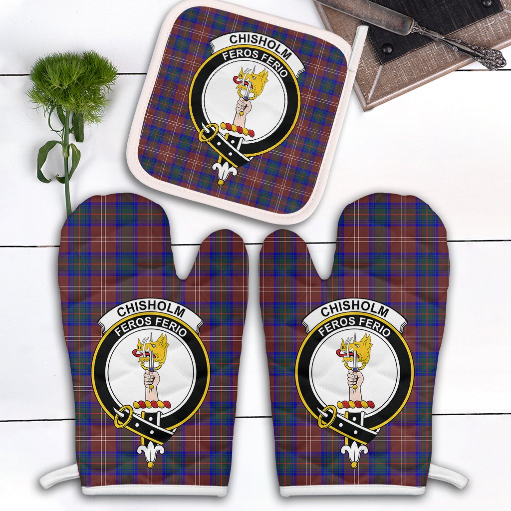 Chisholm Hunting Modern Tartan Crest Oven Mitt And Pot Holder (2 Oven Mitts + 1 Pot Holder)