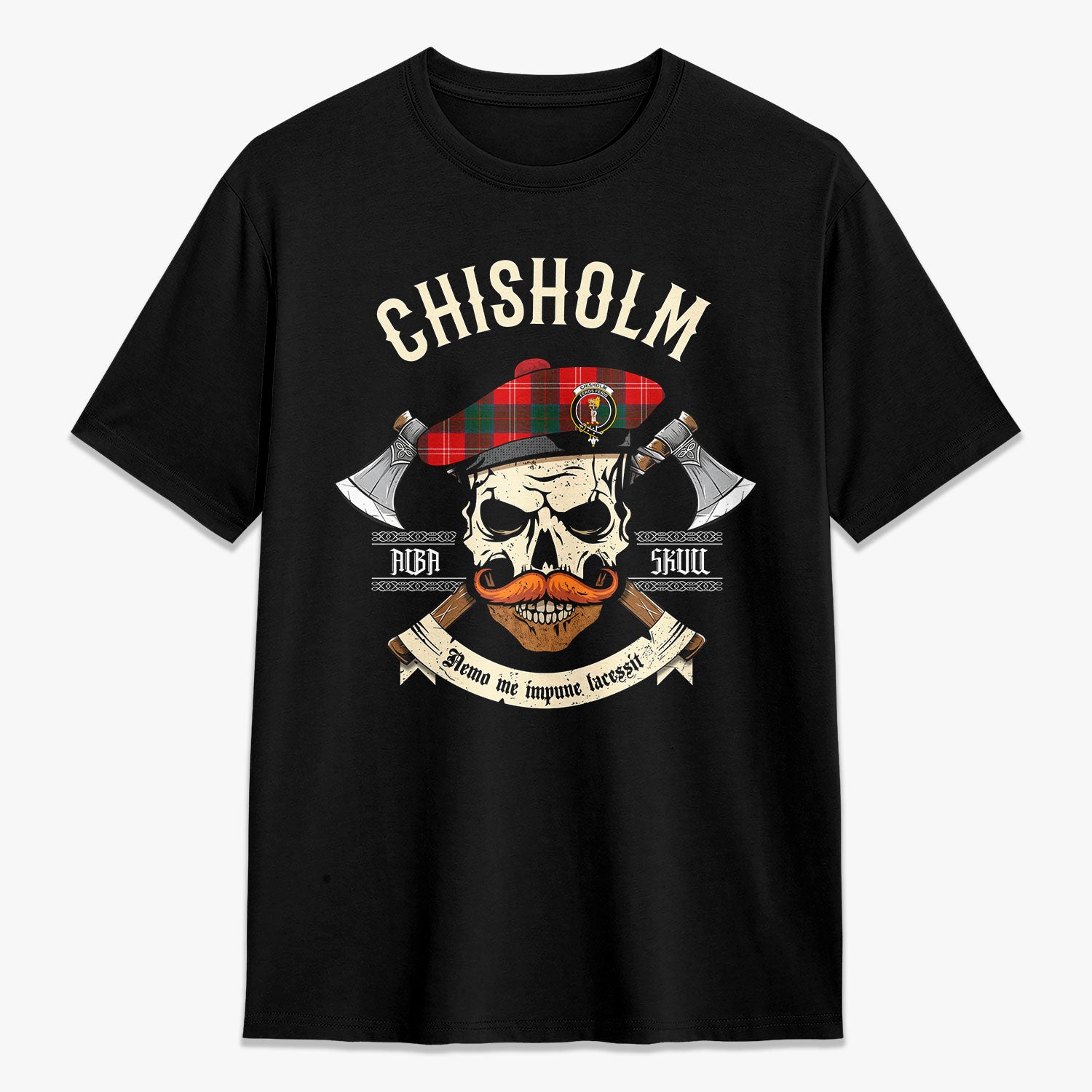 Chisholm Modern Tartan Crest 2D T-shirt - Alba Skull Style,