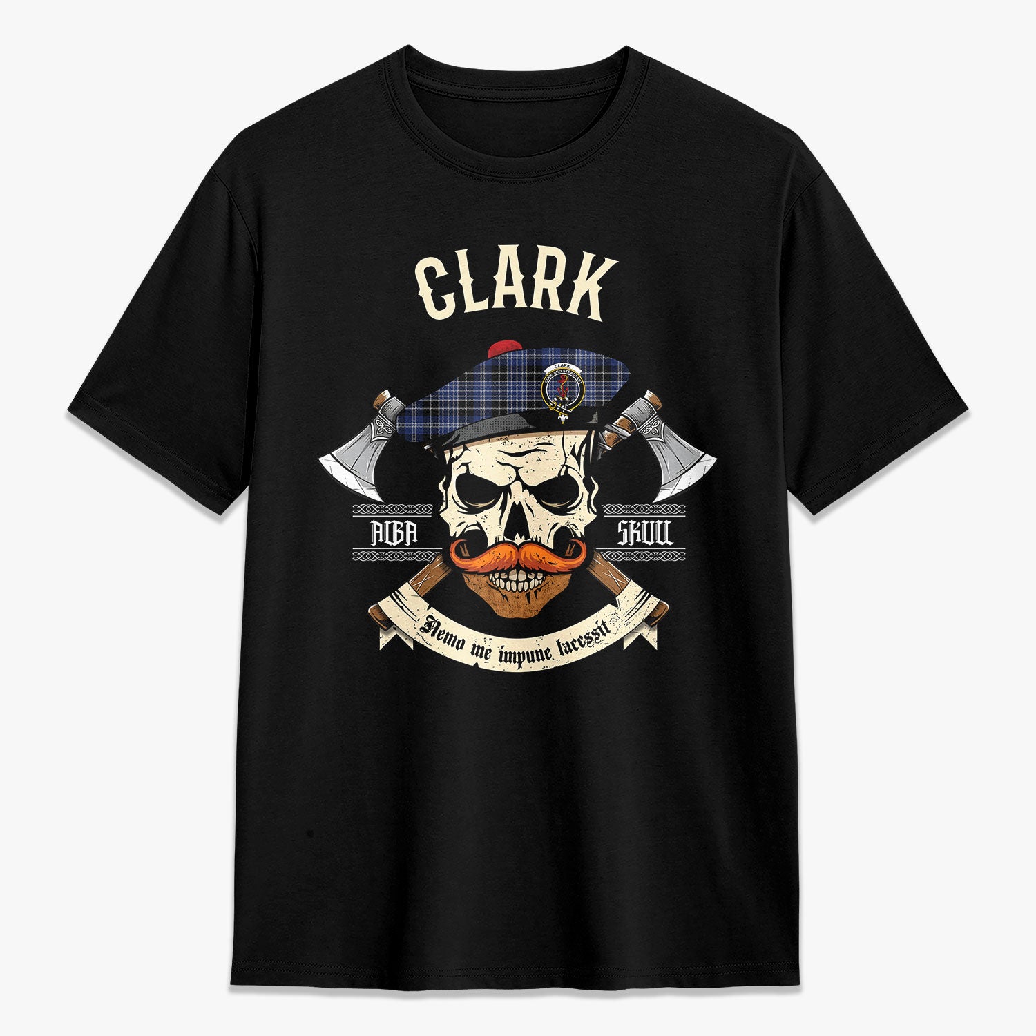 Clark Modern Tartan Crest 2D T-shirt - Alba Skull Style,