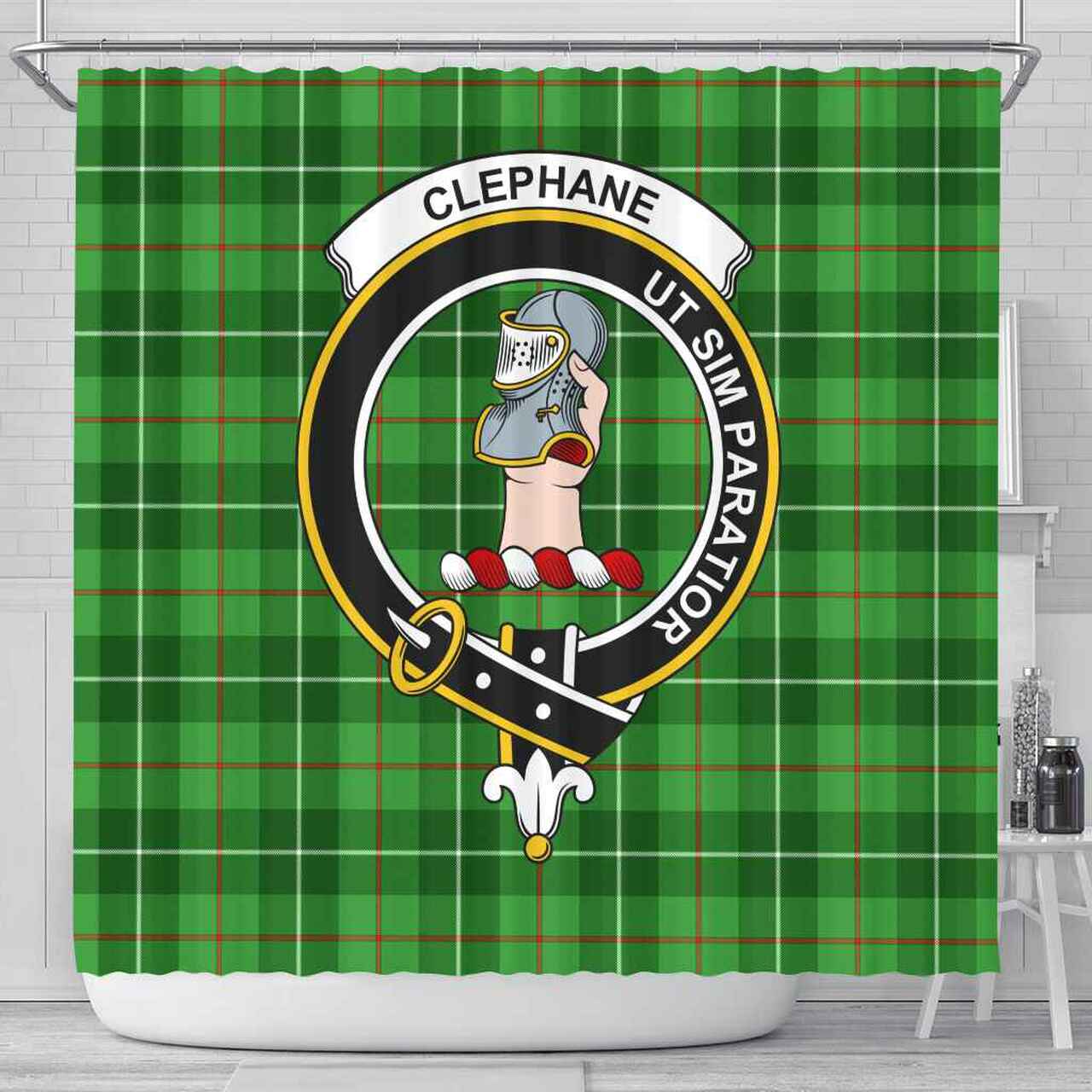 Clephane (or Clephan) Tartan Crest Shower Curtain