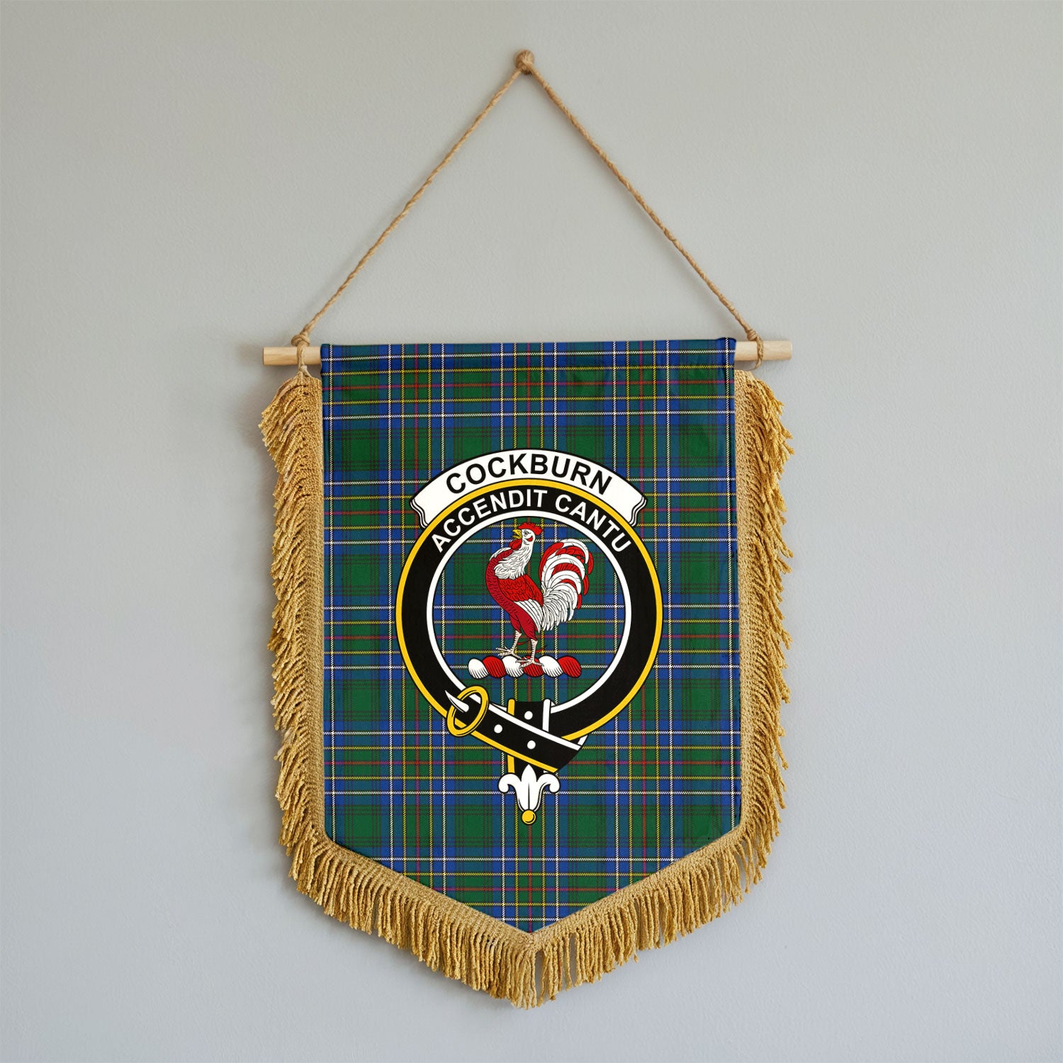 Cockburn Ancient Tartan Crest Wall Hanging Banner - Wood Pole
